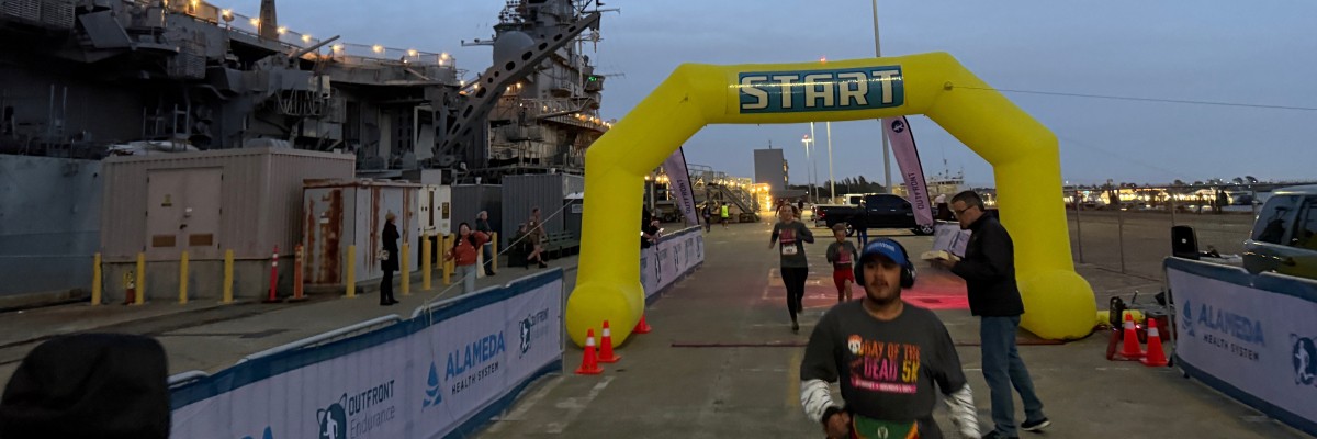 We have partnered with the USS Hornet to bring back a super fun and unique race experience to Alameda. Our "day of the dead" Twilight Run we did a few years ago is back, just moving the date slightly to coincide with Halloween. The event will still benefit the USS Hornet Museum and will start at 6:30pm. Sunset is scheduled that evening for 6:12pm, so headlamps are recommended but we will have lights on the course.