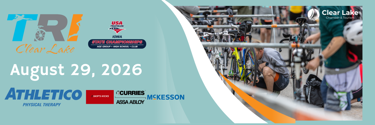 The Clear Lake Area Chamber of Commerce will be hosting the 10th Annual TRI Clear Lake Triathlon sanctioned by USA Triathlon on Saturday, August 29, 2026. The scenic course will commence at City Beach; the flat & fast 1 or 2-loop bike course guides athletes out and back along South Shore Drive. The race is capped off with a 3.1 or 6.2 mile run on North Shore drive along beautiful Clear Lake and back to lakeside finish in City Park downtown.