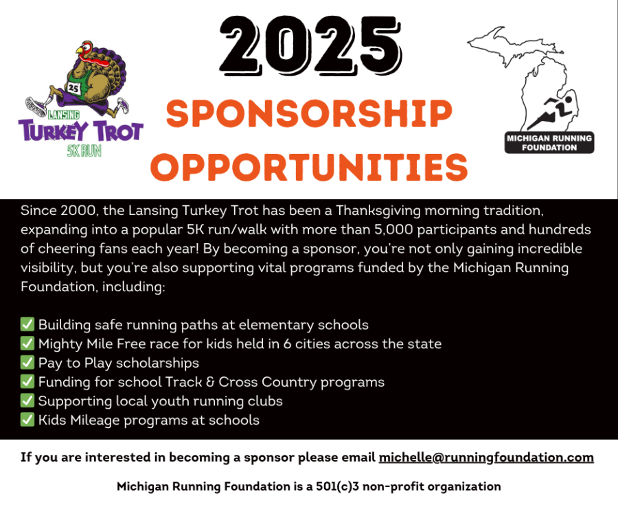 Help us continue to make a difference in our community! For sponsorship opportunities please see the attached flyer and email us at michelle@runningfoundation.com.